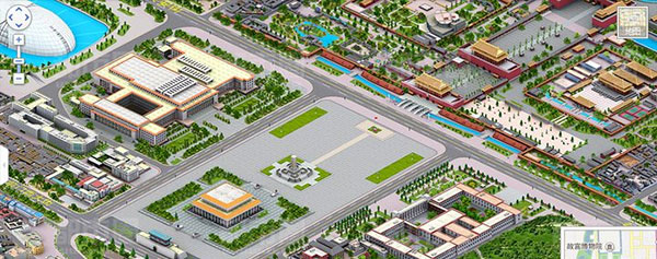 3、 三维假三维(2、5维):这部分数据具有三维的视觉效果,实际在显示时只能平面平移,而不能旋转。这部分数据目前由都市圈提供生产,目前百度地图有这部分显示。这部分数据在目前三维数据生产以及更新周期存在瓶颈的情况下,可以更加形象地展现现实世界的真实情况,属于平面地图和三维地图之间的中间产物。