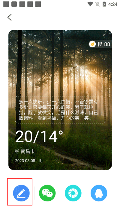 ②使用当前背景或者点击编辑图标更换背景后选择分享渠道进行分享即可