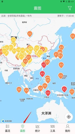 1、实时查询:通过列表和地图的形式展示全球范围内最新地震讯息,可以筛选地震范围、地震时间和地震震级。
