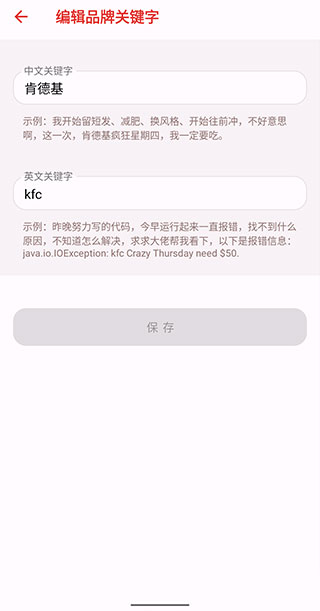 2、进入设置界面后,点击编辑品牌关键字按钮
