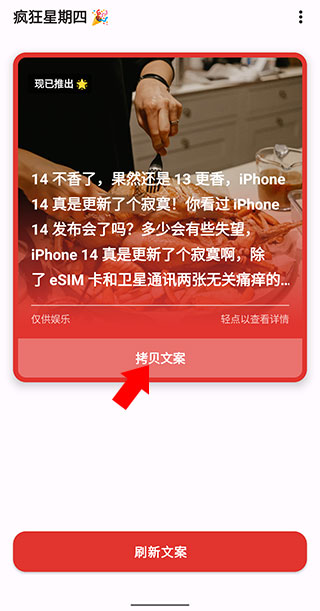 4、之后返回首页点击刷新文案并点击上方的拷贝文案即可