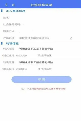 5、填写“本人基本信息”和“转移信息”并提交申请。