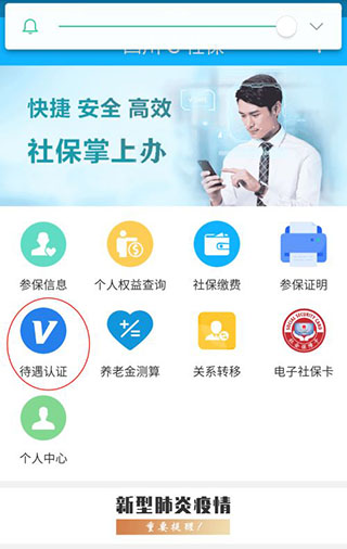 1、进入首页,点击“待遇认证”。