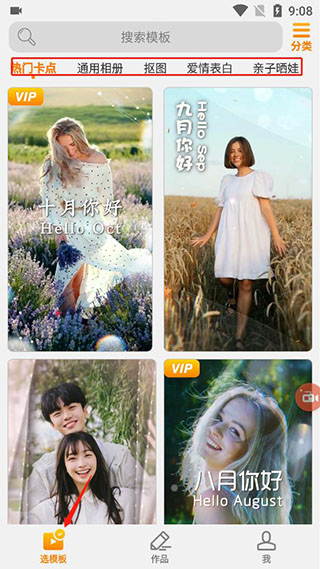 1、下载卡点视频app后打开软件,这里提供了海量卡点模板,比如爱情表白、亲子晒娃等各种类型都有;