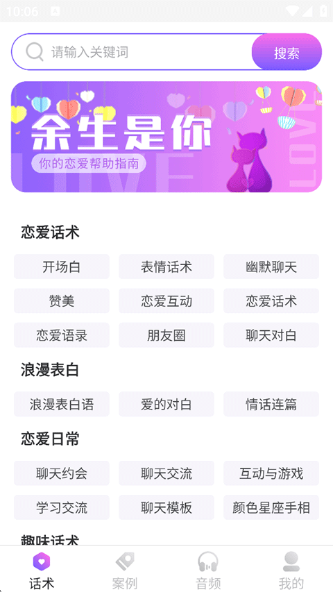 3、让大家都能够学会搭讪,不至于把天聊死,赶紧来试试“恋爱话术情话”APP吧!