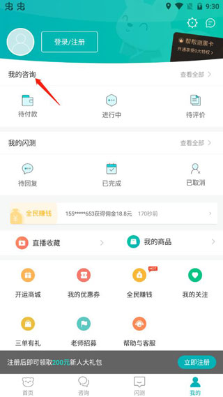 1、首先进入【我的】页面,点击【我的咨询】查看全部订单。
