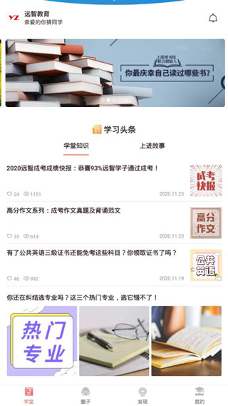 俗话说的好:活到老,学到老,学习是人类进步的一个阶梯,过去的时间都已经过去了,现在能做的就是把握未来,所以今天当快小编特意给大家带来了远智教育app,它是由广州远智教育科技有限公司所推出的一款成人专属学历教育的软件,这款软件目前面向成年人学历教育提供了学习辅导、课程直播、考试报名以及问答社区等多种功能,实现用户可以远程教学,这也可以让学员随时随地的完成自己的学习任务,使得学员可以真正的做到学习、工作以及家庭三不误的情况。该软件上的课程有很多都是在校名师为用户们直播授课的,这样也是可以更加的系统性学习知识,给广大的在职人员提供了深造的学习机会。这里还提供各类学习资料,轻松制定学习任务,按照任务安排学习更高效,有兴趣的小伙伴快来下载体验吧!软件功能