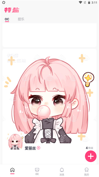1、下载安装后,打开软件进入首页,页面非常简洁,无任何广告,这里有OC创作者发布的作品;