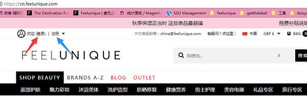 - Feelunique有英德法中西班牙等8个站点,各个站点之间的帐号是不通用的,但可以使用同一个邮箱重新注册。