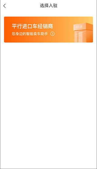 2、接着在选择入驻页面,点击平行进口车经销商,天写入驻信息。
