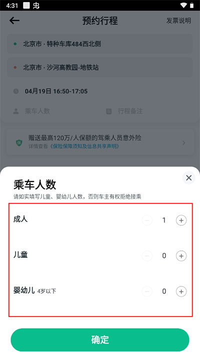 4、然后选择乘车的人数。