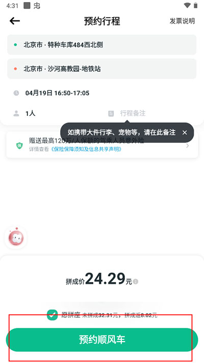 6、都设置好之后就可以点击预约顺风车了。