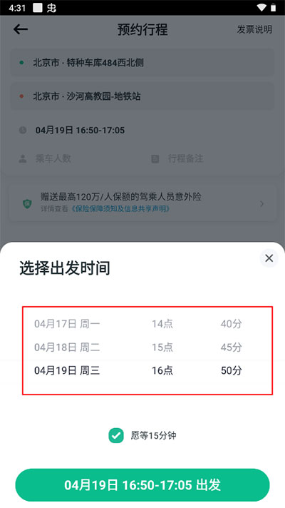 5、根据自己的用车需求选择出发时间。