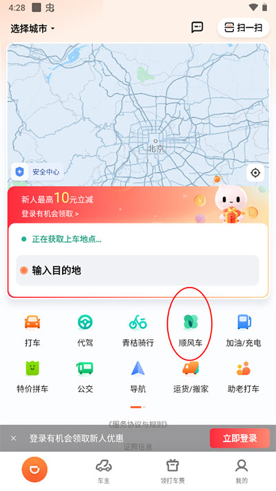 滴滴顺风车怎么叫车?