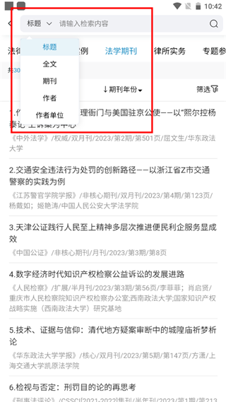 法学期刊支持检索“期刊”,“作者”,“作者单位”