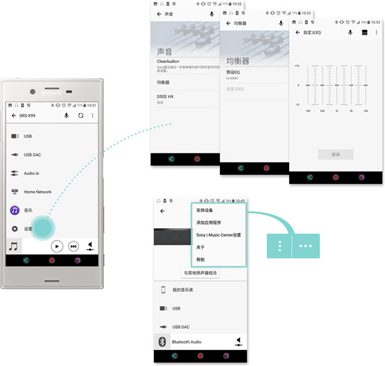 以上功能,只限于互相连接的设备都配有或兼容 Music Center,更多信息请参考官网产品介绍页面。