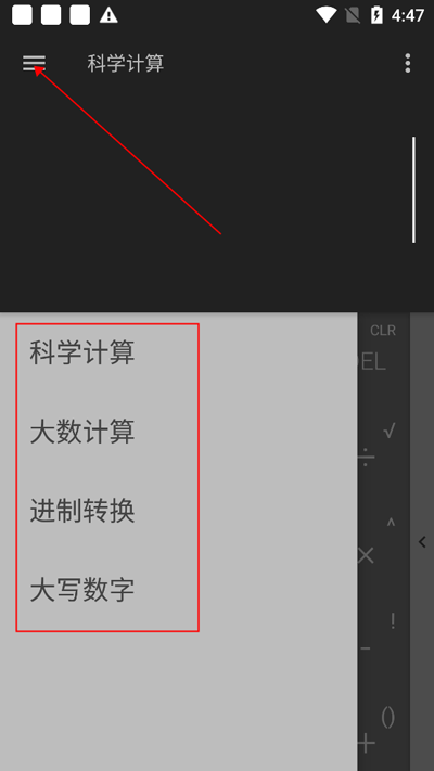 2、点击左上方的三条横杠可以切换计算工具