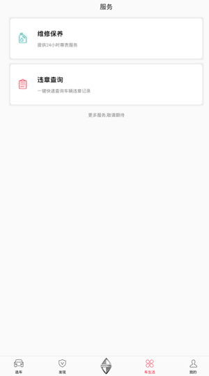 4、点开车生活,有维修保养、违章查询等功能;