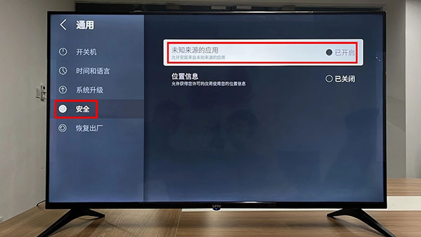 3、找到【通用】-【安全】-开启【未知来源的应用】;