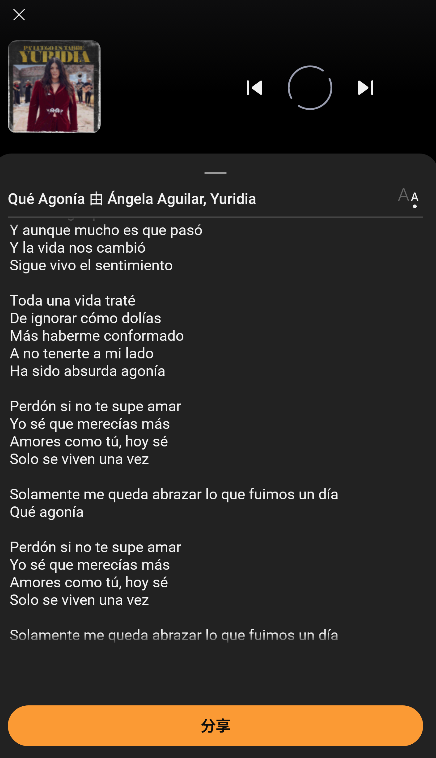 如果歌曲信息正确的话,一般都会加载歌词的。兔纸手机中只有英文 Demo 音乐,歌词显示正常。如果有动态歌词的曲目,开始播放时,左下侧会出现缓冲的图标,大概几秒之后歌词就开始滚动了,唱到的地方就会有长方形的框框。