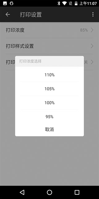 步骤三:进入“内置打印”,有三个选项,可分别对打印浓度、打印样式进行设置,下面图片分别对85%、100%、120%浓度进行样式对比,可选择自己适应的浓度设置。