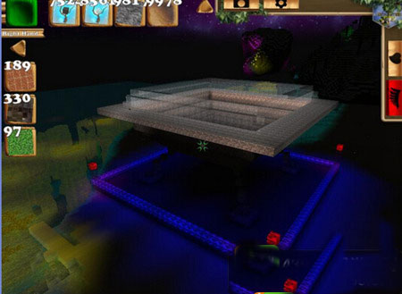 1、铺上一块场地作为飞碟降落台,大小自己选择,降落台四周围上水晶块,四个点做上信号灯,在降落台做上飞碟支柱。