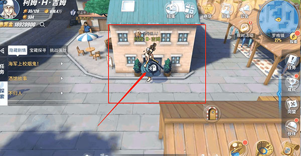 ⑨、在位于【港口区】仓库旁边的蓝色房屋内(下图位置),玩家通过探索告示牌可获得【藏宝图碎片*2】的奖励。