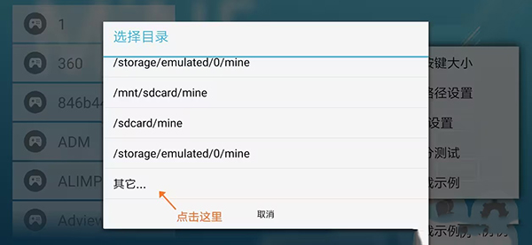 会有一个“其他”点击它,就会跳转到根目录了,再点击下方的“设置目录”就可以把模拟器的默认路径设置到手机的根目录了