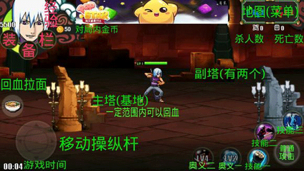 【金币】开局50金币,消灭敌方忍者、小兵和塔来获取,对局结束后所获金币可解锁奥义