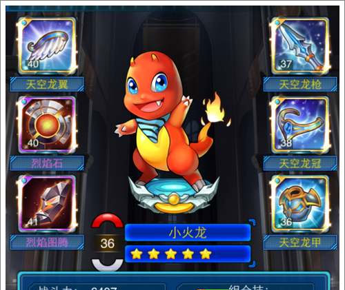 小火龙的特点就是高攻高输出高暴击,尤其是技能为全屏伤害,十分推荐初始增加100能量的套装,起手一个全屏技能的小火龙是非常恐怖的。其次是吸血装备,小火龙的血量略低,撑血的装备虽然好,但是性价比低,用吸血来保证生存能力反而会更好,后期一个技能过去,基本上血量就满了。【推荐套装】