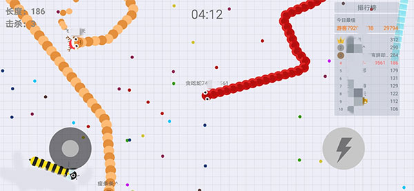 捡漏,就是螳螂捕蝉黄雀在后,比较猥琐的玩法。对于一个有15条蛇的战场来说,混战是必不可少的,所以在捡漏中下足功夫可以让你独占鳌头哟~时刻关注自己周边的战局,低调游走,看到其它变成食物时,头脑冷静,找准时机加速抢夺食物,在战局有利情况下顺带击杀其他大小蛇。