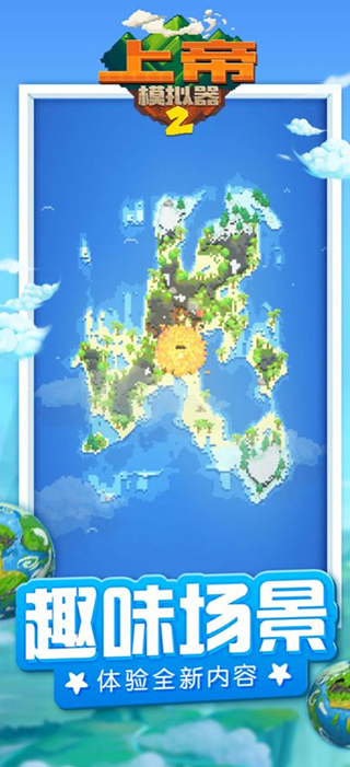 上帝模拟器2手机版是一款很多玩家都非常爱玩的建造类沙盒游戏,也是第二代版本,与之前的版本相比新增了许多道具以及趣味玩法,从而赋予了玩家更高的趣味性。在这里你将是世界之神,您的每个动作都会影响地球的发展,如何让你制作出来的人类发展成一个文明,需要你的暗中帮扶,看着他们一步步的成长,享受喜悦的过程。同时游戏内为玩家们提供了村民、骑士、僵尸等多种不同身份的人,还可以在任意地方创建河流、森林、沙地、高山等,而为了保障游戏的生态链,玩家需在地球上分布动物、保持食肉与食草动物的平衡生长,合理控制弱肉强食,抵制人类对于生态圈破坏的各种行为。当然如果你想毁灭他们也很简单,你只需要用酸雨腐蚀地面、投射核弹、创造龙卷风等等因素,来摧毁这个世界,一切都将由你来决定。