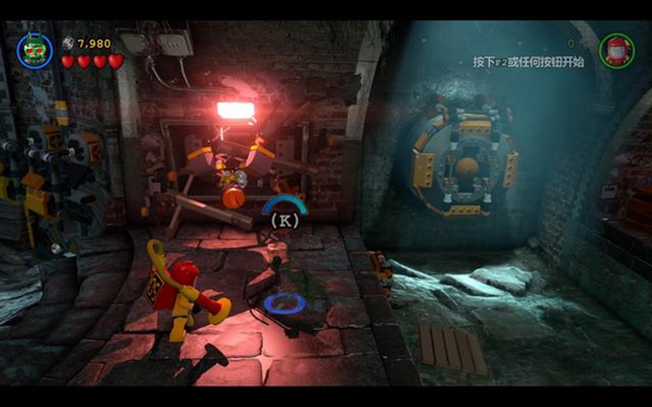 蝙蝠侠和罗宾必须躲开攻击并击打各处的乐高模块。