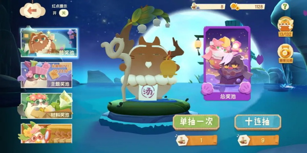 在获取猫咪方面,游戏提供了多种途径:装修公寓、完成章节任务、首充奖励、收集藏宝图碎片以及提升访客好感度等。抽卡系统是获取猫咪的重要方式之一,分为多个池子,每个池子都有不同的奖励机制。比如总奖池可以通过单抽或十连抽获得SSR猫猫,而主题奖池和材料奖池则需要消耗金鱼干来解锁。