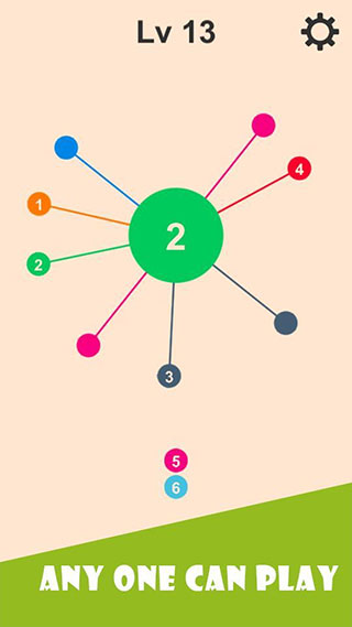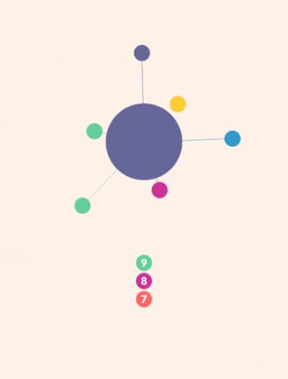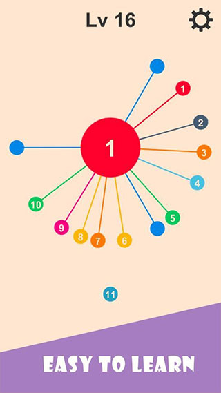 游戏规则看似简单,实则极具挑战:将下方的数字小球发射到旋转齿轮上,并在此过程中没有碰触到任一小球即算成功过关……画面清新简约,内容一目了然,它将会成为你停不下来的魔咒~