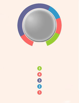 转转玩法在外廓中覆聚着多种针色,下端小圆要完全找准再轻触,这样就会渐而消色,直至全体消完。