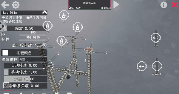 安装完成后,最重要的一步就来了,我们要通过点机械名称旁的按钮来使机械进入模拟场中,测试它的运动状态。将旁边的飞行按钮上拉,即可测试飞行状态。然后根据出现的问题,调整不同零件的参数。有的人飞行器会飞不起来,有的人飞行器会偏离直飞的轨道,还有像小编一样一着陆就散架了的.......遇到这些情况不要担心,合理排查出现问题的位置,调整当前螺旋桨扇叶参数,或者检查机械连接是否牢固,即可轻松解决。