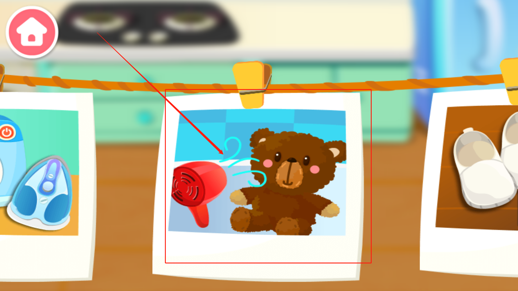 启动开关,小小洗衣机转呀转,衣服马上就洗好!和妈妈一起晒衣服、熨衣服、叠衣服吧!