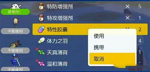 4、然后在背包中找到购买的特性胶囊,给宝可梦使用就可以更改特性了;