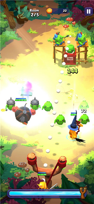 在战斗中使用强大的弹弓吊起您的鸟儿,观看一切蓬勃发展!