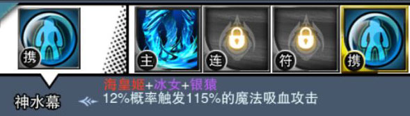 以海皇姬的技能为例子,搜集齐海皇姬+冰女+银猿,在战斗的时候3个英雄出手的时候有12%几率发动这个技能.