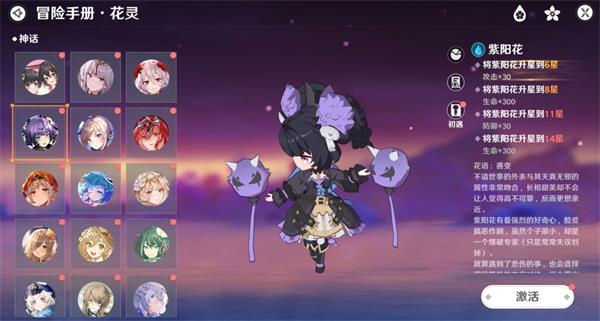 对了,获得新的花灵,或者花灵升星到一定阶段,都能在冒险手册中进行激活,会给角色提供一定属性加成,冒险家们不要忘记哦~