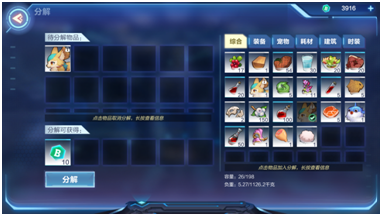 在背包中,可以将多余的宠物进行分解,能得到游戏中的基础货币(比特)。
