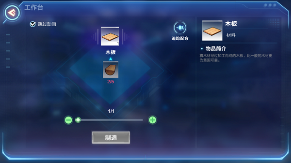 材料类可以说是制作装备,建筑类必不可少的东西,作为基础类配方(厚木板,石板,木板),其中最常用的要数木板。木板的配方很简单,五个木材便能通过工作台制作成为一个木板。木板经常利用在前期装备,武器制作上,可以说是必不可少的一个配方。