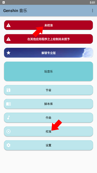 1、在本站下载并安装原神音乐助手,来到下方界面后,首先我们点击上方的未校准或者下方的校准按钮