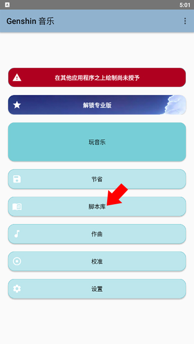 3、校准完成后返回首页,点击脚本库进入脚本设置界面