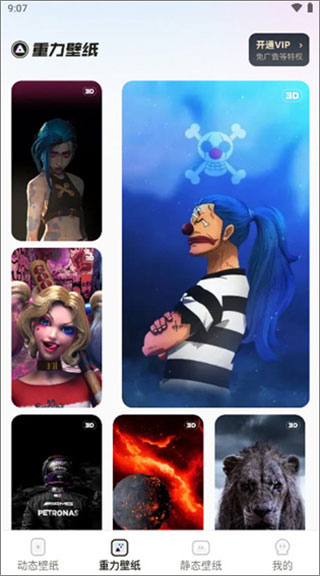 4、点击重力壁纸,可选择你喜欢的重力壁纸。
