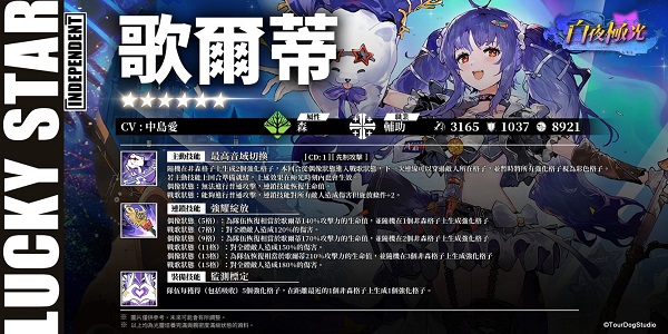 5、总结:歌尔蒂作为一个辅助,中规中距,但是她并配不上1.5周年限定的强度,看看她的前辈们,一个是自选4,全队水光灵队友加攻,另外一个可以狙可以爆破,全队伍雷和启光角色加攻,并且拥有全游理论上的最高面板;歌尔蒂,她有啥,随机非森格子转强化格!随机就代表不可控,就代表意外性,为什么乌列尔洗地板给的格子随机的,但是大家还是爱用,因为她量大管饱,就算是随机的,只要你数量足够,是可以弥补质量上的不足的(贴怪脸上格子数可能不够多);歌尔蒂她开局只能转2个强化格子,就算你进极光开大,也就3+2=5个强化格,最重要的是,你这5个强化格子,还TM是随机的,那我为什么不带免费送的珀蓝蒂,最起码人家转5个格子带强化格还能控水格子,而且是可控,说到底,歌尔蒂她只是在你常规转色不够的时候,可以掏点奇怪角色出来凑队伍用的