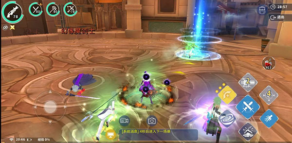 在这里小怪是无敌的,只有四个人都站在法阵里才能解除小怪的无敌。四个法阵不会移动,但出现的位置不固定,不过变动都不大。需要注意的是小怪是分两波出现,第二波小怪出现时法阵位置会重新调整(小概率会保持位置不变),注意及时调整站位。