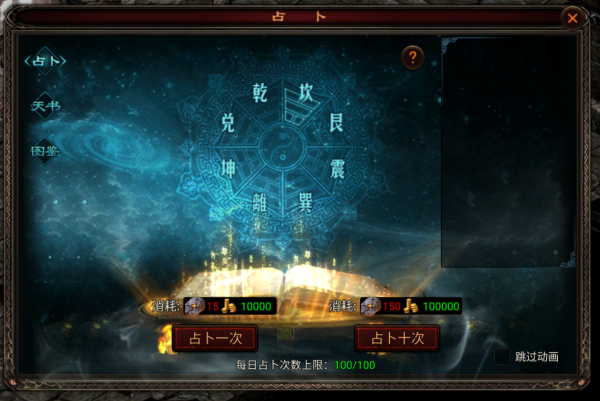 3.占卜出的天书残叶可合成天书文字(只可合成一级的)。